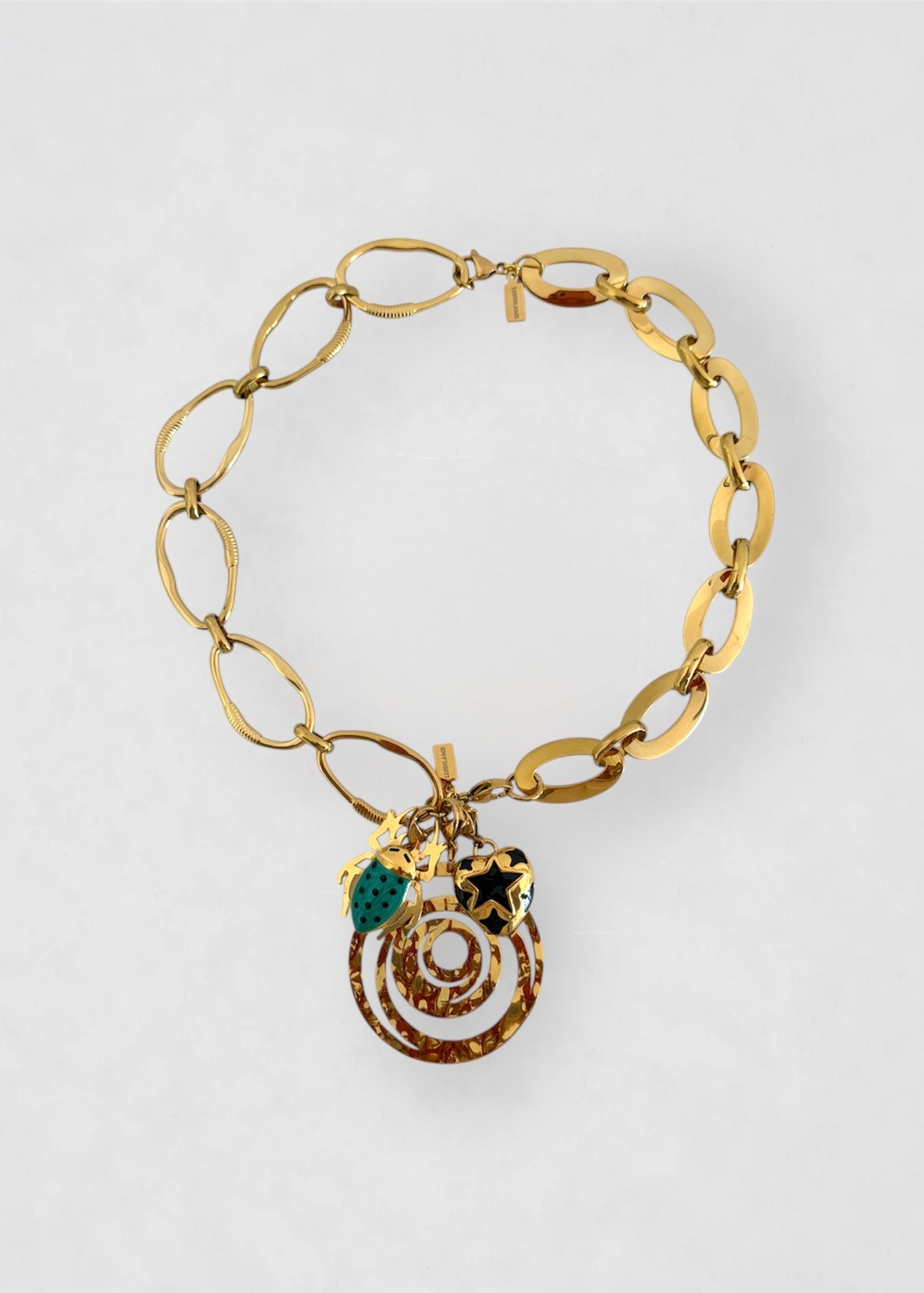 - Materiales: acero inoxidable bañado en oro de 18k